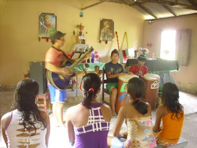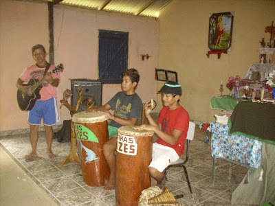 Quando ganhei o CD do ‘Minhas Raízes’ há quase dois anos o que me chamou atenção antes de tudo foi a foto com as crianças e adolescentes do grupo. Carinhas cablocas, sorrisos tímidos, jeitinho simples que lembrou minha infância. Ao ouvir as músicas fiquei encantada, ainda não tinha ouvido nada parecido, nada que falasse com tanta propriedade da cultura beradeira, especialmente das brincadeiros, dos festejos. O Zé Carlos que parece mais porto-velhense que eu virou fã. A nossa ida a Nazaré só fez aumentar ainda mais a admiração pelo trabalho da turma do Timaia, ô gente de garra, maninho! O melhor veio ao fim da visita quando ouvi “só pra mim” o “pan-pan-pan-ram… pan-pan-pan” do ‘Toques da mata” tocado na flauta do Thalisson. Bom quissó!