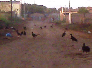 Há alguns dias encontrei com o vice-prefeito Emerson Castro e pedi a intercessão dele junto às secretarias , pois vizinhos e não vizinhos jogavam lixo no meio da rua, o que atraia muitos urubus. Ilustrei assim o meu pedido: