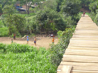 Tantos anos de Porto Velho e nunca tinha ido à ponte do Nacional em período de seca. A pauta sempre foi a alagação, as péssimas condições da ponte e até um caixão de criança que estava boiando nas águas poluídas do igarapé. No final de semana, registramos a ‘situação verão’ daquele espaço. A sujeira permanece, mas a área livre das águas da enchente se transforma em um prosaico campo de pelada. Ê Porto Velho!