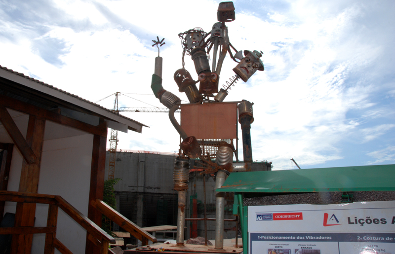 Os caras estão construindo uma barragem, mas têm tempo e inspiração para fazer este espantalho.