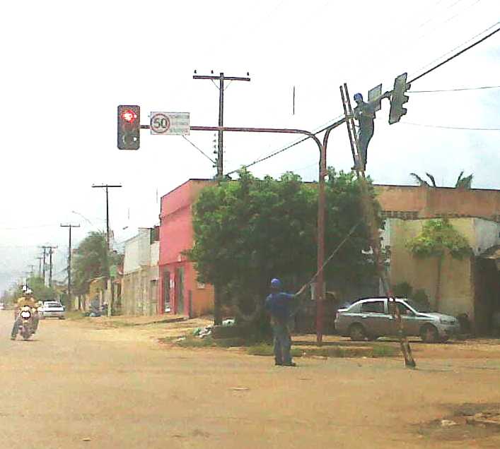 Estes homens desafiavam o trânsito da Rua Mamoré com Avenida Amazonas. Sem nenhum cone ou placa de aviso, trabalhavam literalmente no meio da rua. Irresponsabilidade deles e da empresa para a qual trabalham (Foto JCarlos)