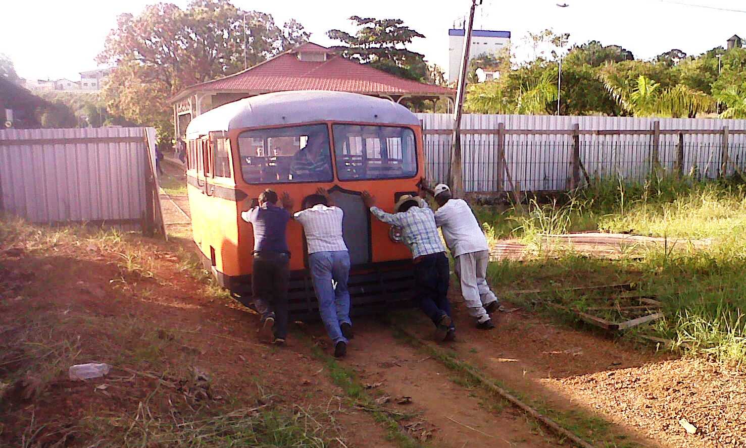 Tudo pronto para a apresentação às autoridades e convidados da antiga litorina, restaurada pelas mãos do ex-ferroviários da Estrada de Ferro Madeira-Mamoré, e na hora exata, o motor do veículo não “pega”.