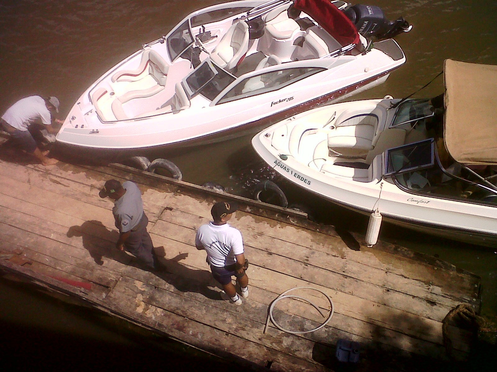 Assistimos ontem, da varanda de um restaurante às margens do rio Candeias, Bar do Cais, a atuação de militares da Delegacia dos Portos. As lanchas e moto aquáticas que navegavam no rio Candeias e cujos pilotos e passageiros não estavam usando coletes salva-vidas eram “convidadas” a ancorar e passavam por uma verificação dos documentos. Algumas ficaram retidas. Houve choro e ranger de dentes. Os jornalistas que estavam almoçando não perderam a oportunidade de registrar o fato pelo twitter.(Fotos JCarlos, com celular)