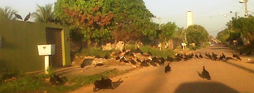 05 de maio de 2012 ESSES MERECEM Por José Carlos Sá O cara joga bicho morto no lote vago em frente de casa e acorda com estes visitantes. A cena foi na manhã de hoje na rua Miguel Ângelo, conjunto Buritis.