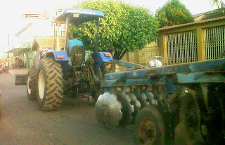 Máquina agrícola, também na avenida Migrantes, às 7 da manhã, sem sinalização ou batedor. (Foto JCarlos)