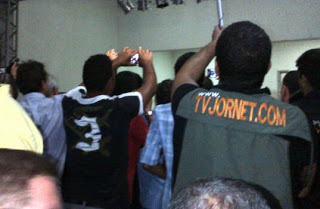 Jornalistas – nunca vi tantos fora de uma boca livre -, parentes e cabo-eleitorais fizeram um muro entre a mesa diretora e o restante do local. Só se viam *undas. Literalmente. Acompanhamos o desenrolar da cerimônia apenas pelo serviço de som. Por outro lado, as autoridades postadas na mesa não viam o povo.