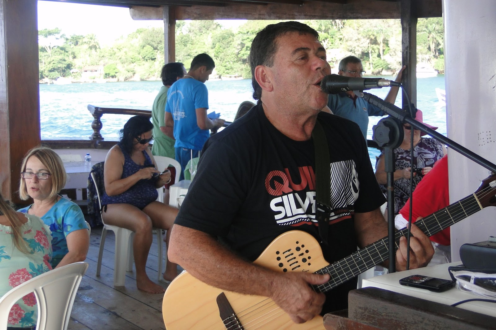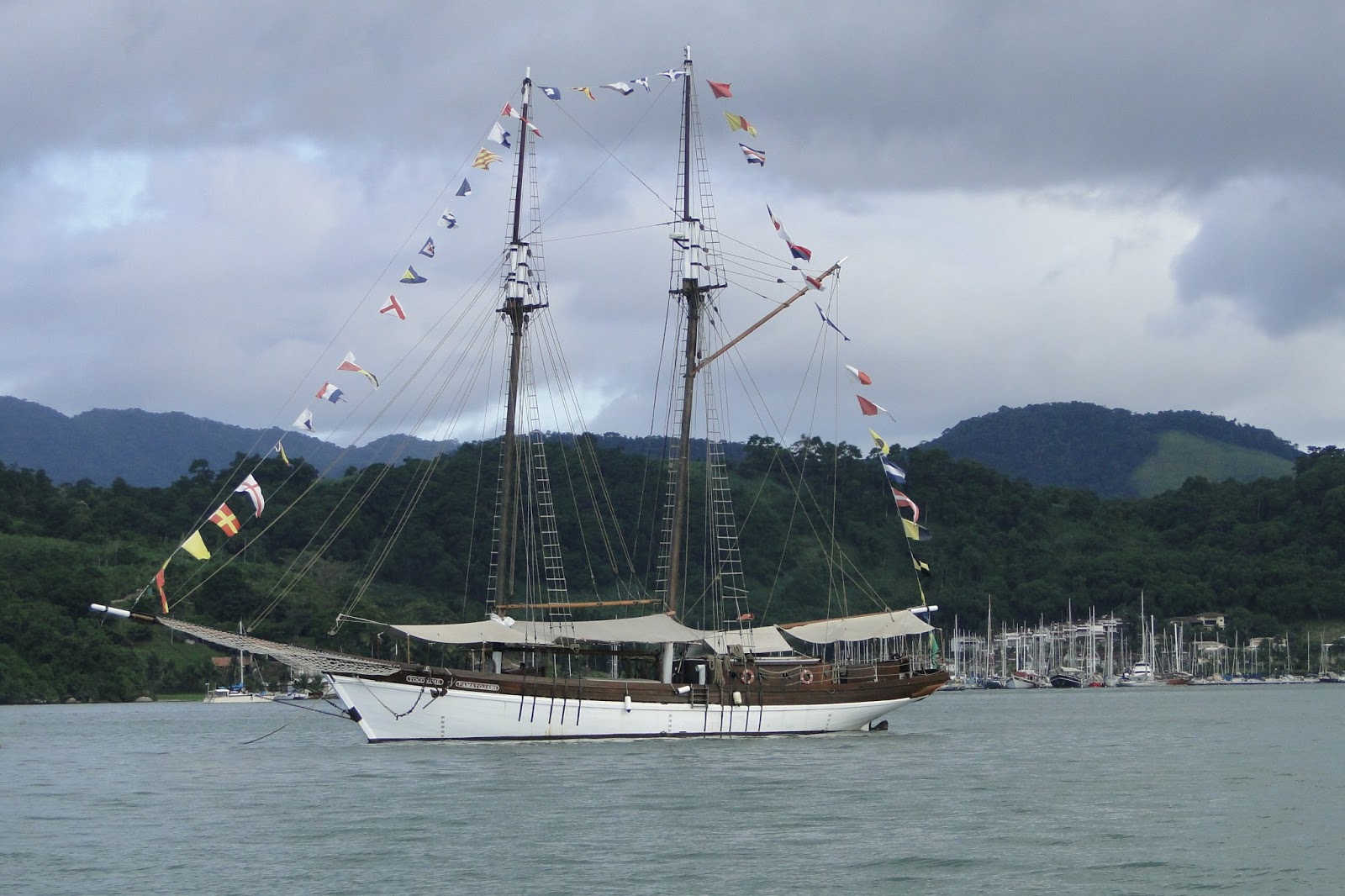 Assim fiquei sabendo o nome e o codinome do cara que animou nosso passeio na escuna “Estrela da Manhã V” pela baía de Paraty. Cheio de graça, começou dando as instruções de como usar o colete salva-vidas. Depois de explicar como vestir o colete, amarrá-lo ao corpo; um braço sobre o flutuador e a mão tapando a boca e o nariz. “Depois é dar um longo passo, pular na água e seja o que Deus quiser!” Todo mundo riu amarelo.