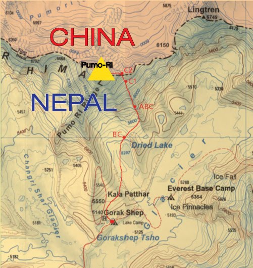 Monte Everest, na fronteira entre o Nepal e a China