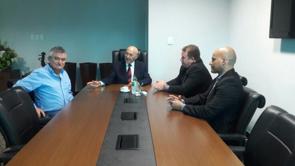 O deputado estadual Neidson Soares consegue uma audiência com o governador Confúcio Moura para discutir a aplicação de emendas do parlamentar em Guajará-Mirim e leva um acompanhante para o encontro que contava ainda com a presença do secretário-chefe da Casa Civil, Emerson Castro. Até aí tudo bem. Vão vendo as fotos distribuídas pelas assessoria: