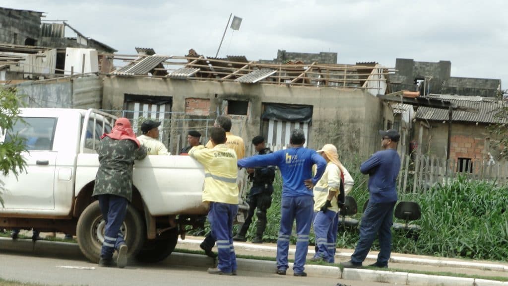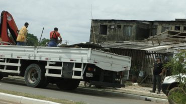 Um grande aparato oficial está sendo utilizado no cumprimento de determinação judicial para desocupação dos imóveis do ex-futuro conjunto habitacional Cuniã I, na rua José Vieira Caúla com rua Cristina, no bairro Cuniã. Vi policiais militares, bombeiros, pessoal da Semtran, além de funcionários de outras secretarias. Uma equipe de empresa de energia, que presta serviços à Eletrobras Distribuição, também estava por lá. Eram 10 famílias remanescentes que não saíram no prazo (20 de agosto).