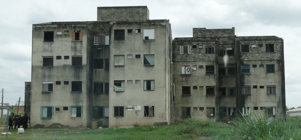 Eram 67 famílias que ocupavam os apartamentos, que começaram a ser construídos com recursos do PAC, mas como em tantas obras, a construtora abandonou o serviço e a Prefeitura não cuidou do que estava pronto e os invasores tomaram de conta. Os prédios serão demolidos após a desocupação. O prejuízo fica para a Viúva.