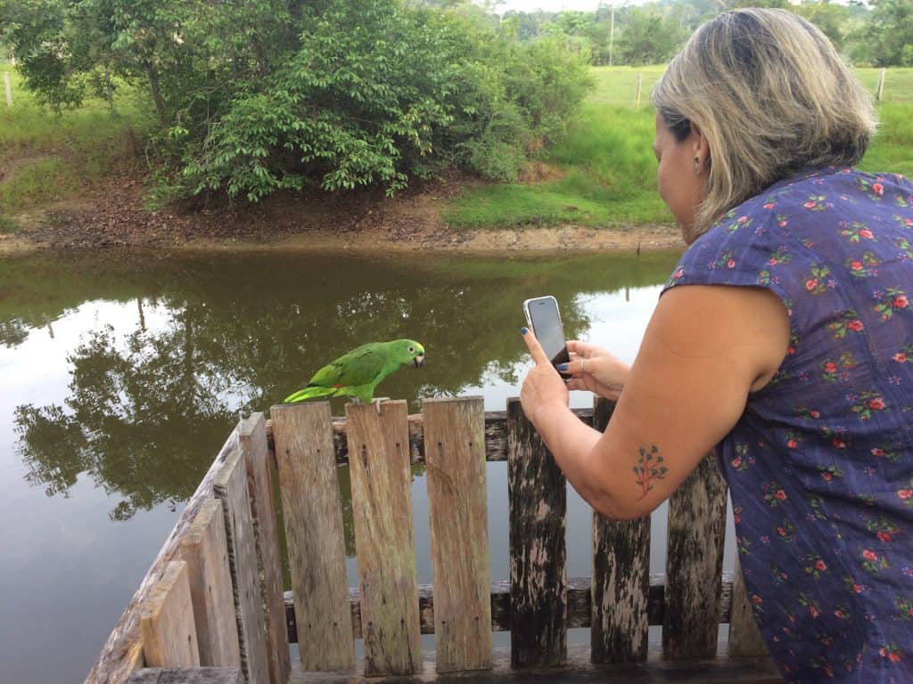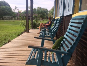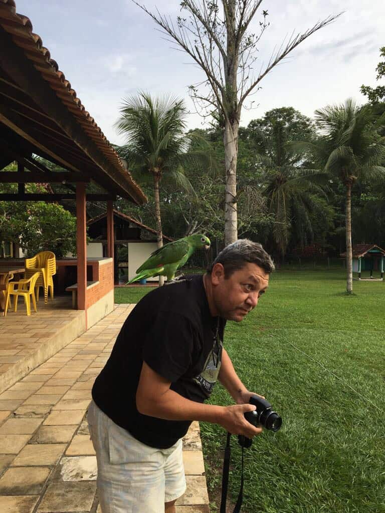 Saímos do pier e fomos em direção ao refeitório para o café da manhã. Só sentimos o voo rasante que ele deu sobre nossas cabeças depois que tinha passado todo sorridente. Mais tarde uma das funcionárias da Pousada explicou que o Louro gosta das hóspedes e chega a beliscar os maridos ou acompanhantes daquelas que ele está de olho. Fiquei esperando, mas ele não se fez de besta comigo, a não ser um ligeiro atentado.