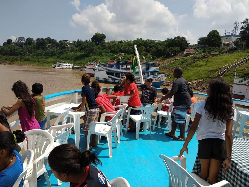Sabe o que é morar numa cidade que tem um grande e lindo rio e só conhecer de ouvir falar? Parece impossível, mas não é. Nas minhas andanças como repórter conheci muita gente adulta que não sabia onde ficava a praça da Madeira-Mamoré e, claro, nunca tinha visto o rio Madeira. Ontem (14), um grupo de 23 crianças porto-velhenses foi conhecer o Madeirão. Ficaram admiradas com o tamanho do rio e com a cor de “lama” dele. Se encantaram com os barcos, ficaram (mais) agitadas com os botos.