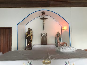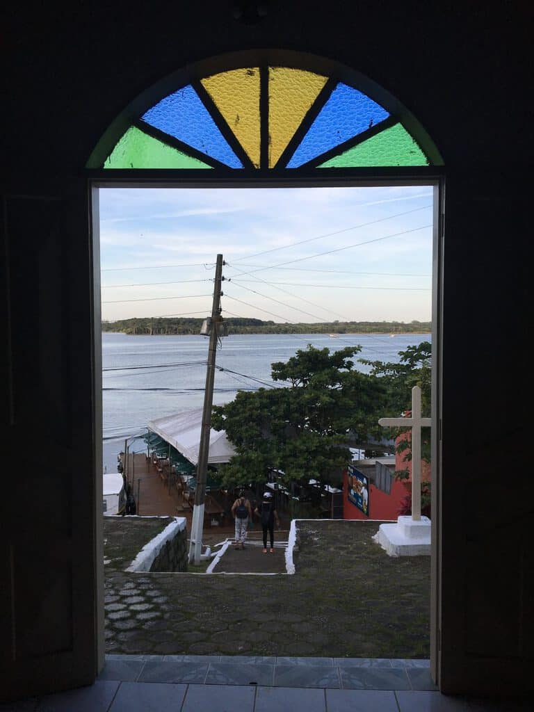 Tivemos a dica de que a parada 16 era a que mais rendia passeios. Descemos lá e fizemos uma caminhada pelas ruas – na verdade becos – estreitas de acesso, de um lado à cachoeira, que não fomos desta vez, de outro a uma loja de artesanato, as igrejas, uma católica e outra evangélica, e a vários restaurantes, que tem nos frutos do mar a pedida principal dos cardápios. Numa ligeira pesquisa fiquei sabendo que o “fundo” da lagoa, no lado oposto à área urbana de Florianópolis, até a década de 1980 era habitada basicamente por nativos, que trabalhavam na pesca e agricultura de subsistência e as casas, em sua maioria, eram de madeira. Depois o lugar foi descoberto por “professores universitários, turistas de várias partes do país, novos ricos, aposentados e alternativos em busca de qualidade de vida escolheram o Canto da Lagoa para se estabelecer“.