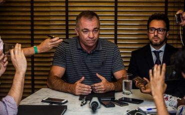 O prefeito afastado de Florianópolis, Geam Loureiro, reuniu a imprensa logo que foi solto (Foto Tiago Ghizoni / Diário Catarinense)