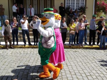 Assistimos ao desfile (bastante diferente de outros que já vimos) com representantes de várias famílias e de outras cidades. Depois da parada havia outras atividades como barracas de artesanato e de comidas típicas, chopp e apresentações artísticas. Por causa do pouco tempo que tínhamos, optamos por comer. Eu não dei conta de comer toda a comida que veio em meu prato…