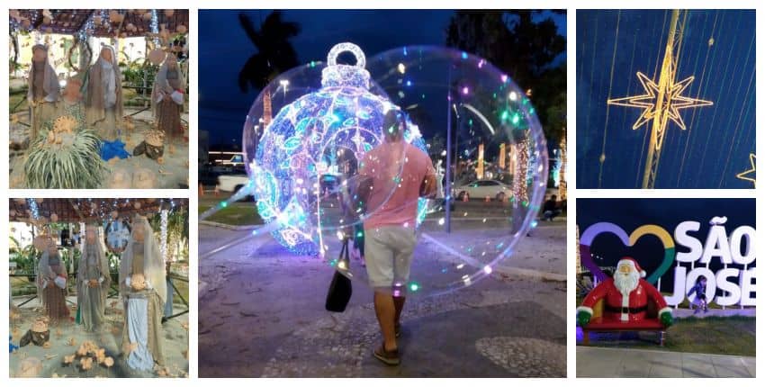 Ontem (19), fomos conferir a decoração de natal feita pela Prefeitura de São José da Terra Firme no Centro Histórico. Tudo muito bonito, mas sem nada que se diga “Oh! Que maravilha!”. A inovação foi um equipamento que lança espuma, imitando a neve e fazendo a alegria da criançada. No mais, caixas de som com músicas natalinas, ainda bem que não é na voz da Simone…