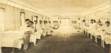 Carl Lovelace, chefe do serviço de saúde da construtora da EFMM, tendo ao lado o sanitarista Oswaldo Cruz e o médico Belisário Pena (Foto Fiocruz)