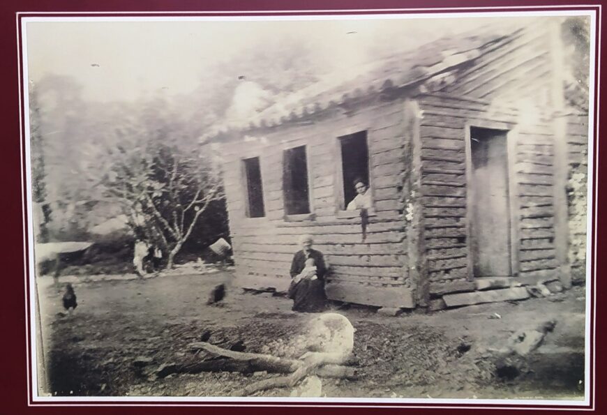 Legenda existente na foto exposta no MHSC: “Autor desconhecido. Título da obra: Fotografia casa onde nasceu Anita Garibaldi em Morrinhos (SC); 1915. Técnica; fotografia. Procedência: Arquivo SIAN (Sistema Nacional de Informações); nome do arquivo: BRRJANRIO ST.0.FOT.56 – Dossiê FUNDO: Virgílio Várzea”