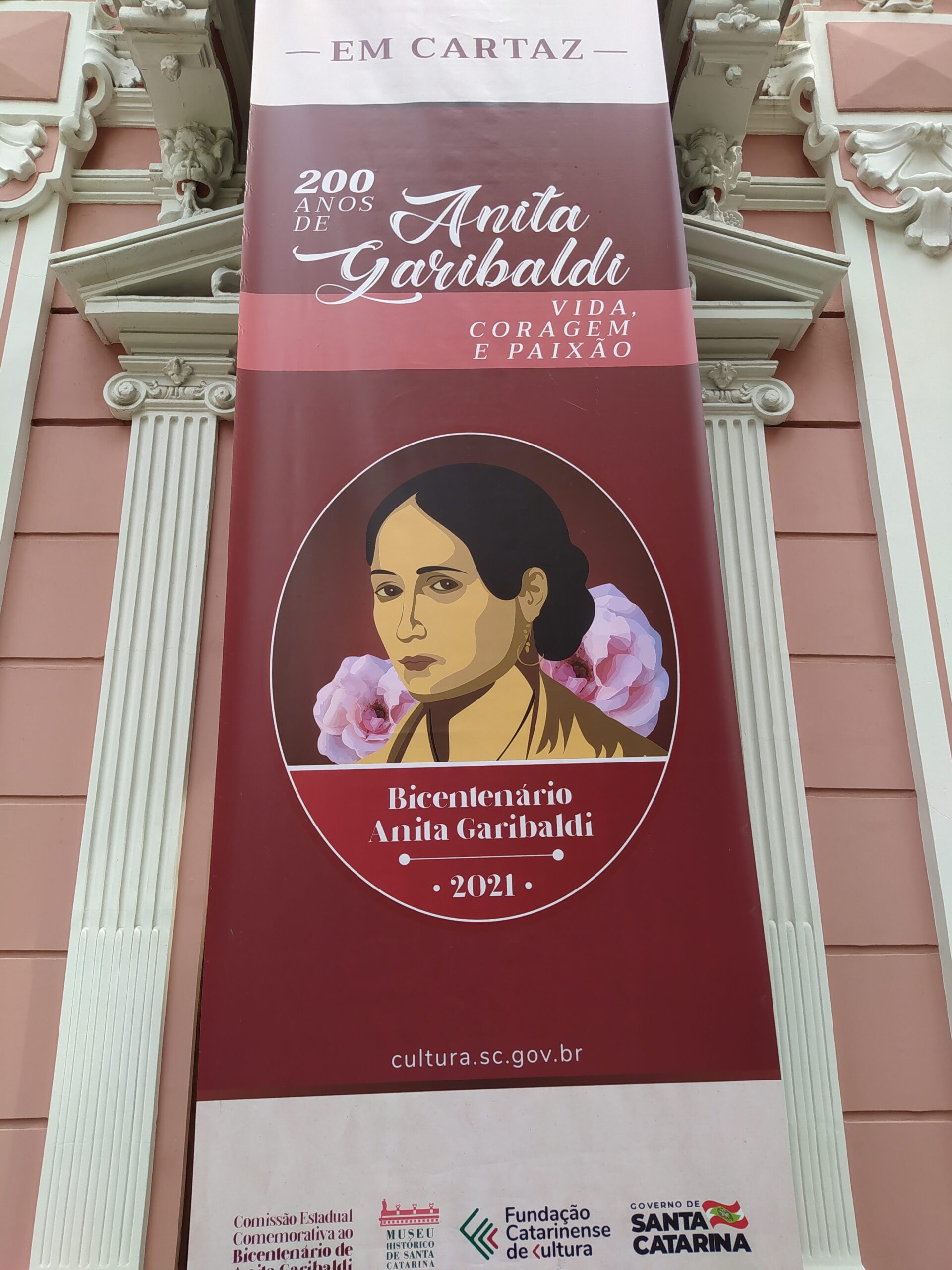 Visitamos, no Museu Histórico de Santa Catarina, instalado na antiga sede do governo estadual, Palácio Cruz e Sousa, a Exposição “200 anos de Anita Garibaldi: Vida, Coragem e Paixão”. A mostra é formada basicamente por painéis que narram a história da catarinense que venceu os preconceitos de seu tempo, participou de várias batalhas e seguiu o seu amor, o mercenário Giuseppe Garibaldi, com quem se casou e foi para a Itália com os filhos, onde morreu grávida em 1849. Anita foi sepultada sete vezes, mas isso é assunto para outra hora.