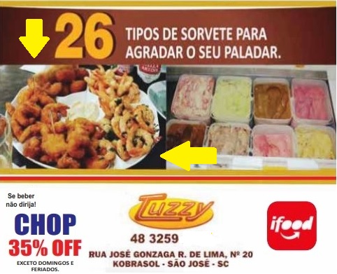 O ilustrador não prestou atenção ao texto . Ou o redator não prestou atenção à imagem (Reprodução de jornalzinho de varejo)