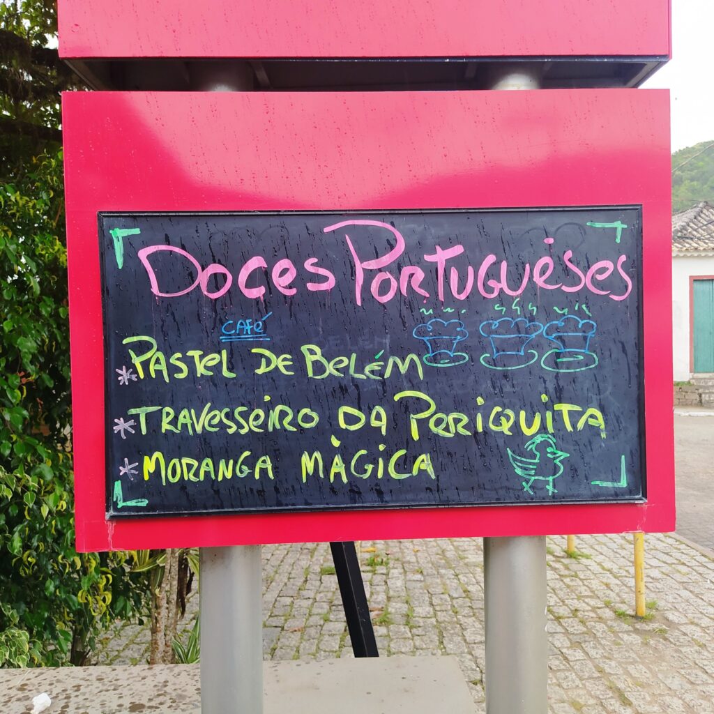 Se a Dona Bela, da Escolinha do Professor Raimundo, visse essa placa talvez desmaiasse. Mas Travesseiro da Piriquita, explicaria seu Ptolomeu, nada mais é que um doce português, receita da loja da Piriquita, em Sintra – Santo Antônio de Lisboa – Florianópolis (Foto JCarlos)