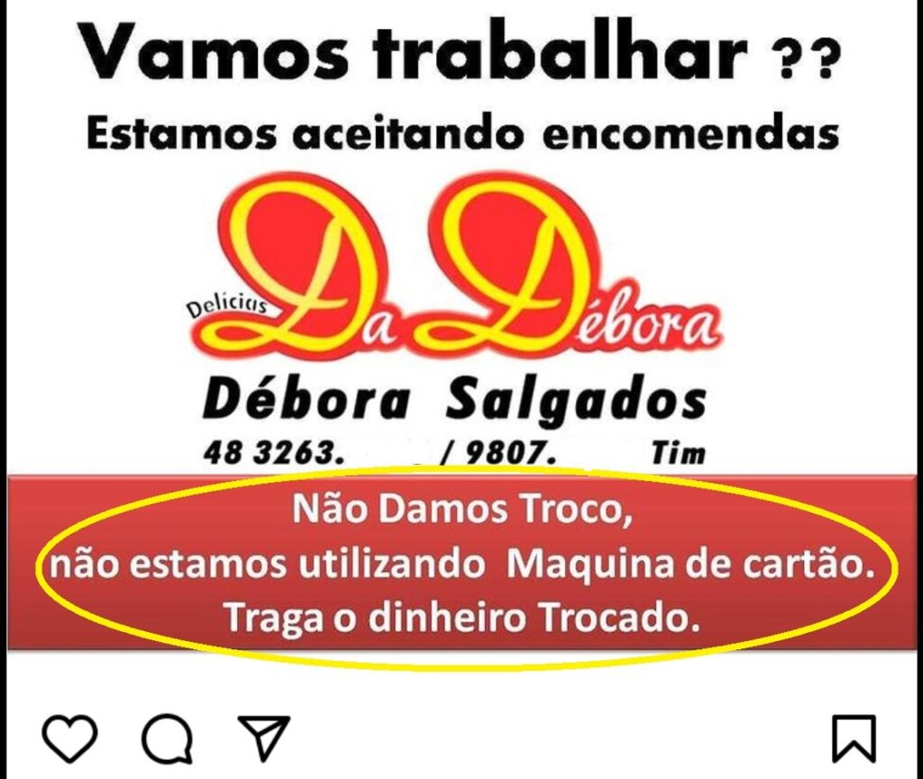 Não achei simpático o aviso. Esqueceram de dizer que também não aceitam cheques (Reprodução Instagram)
