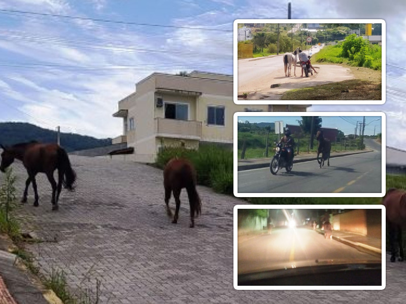 Outra de bichos: Na foto maior, cavalada na nossa rua; de cima para baixo: Não é isso que você está pensando; Reboque; Susto. Dois cavaleiros na rua mal iluminada (Fotos JCarlso, várias datas)