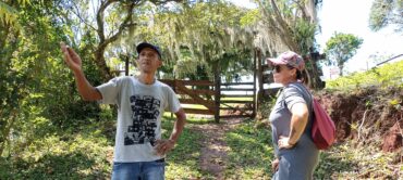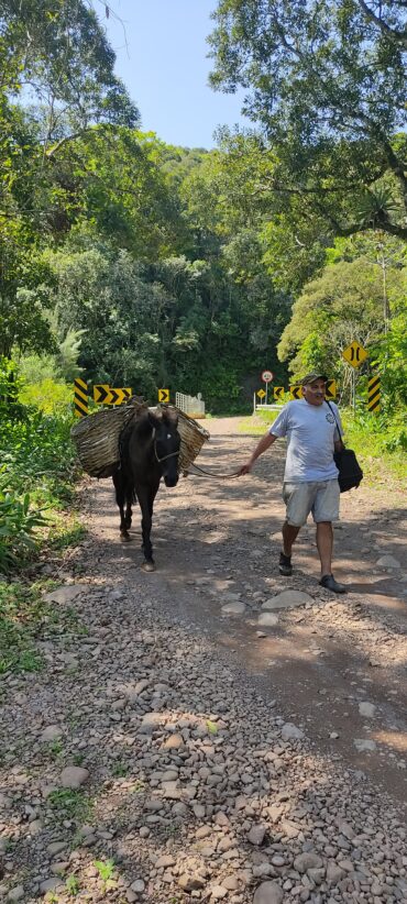 Quem nos recebeu foi o seu Eliseu Santos Pereira, que atua como guia comunitário, levando os visitantes (ele prefere esta palavra à “turistas”) pelas trilhas até a Pedra Branca, uma formação rochosa que dava nome ao lugar. Eliseu é bisneto de um casal escravizado, formado por um africano e uma indígena Kaingang, “que foi pega a cachorro e escravizada também”. Atualmente ele oferece os serviços de guia e hospedagem (camping) através da empresa Ubuntu Ecoturiosmo (@ubuntuecoturismo no Instagram).