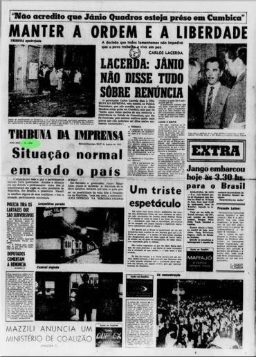 O jornal Tribuna da Imprensa, de Carlos Lacerda, fazia oposição sistemática ao governo de Jânio Quadros (Facsimele da edição de 26/08/1961/Hemeroteca Nacional)