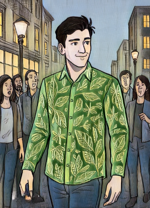 Lá pela década de 1980, ganhei de presente de aniversário uma camisa de mangas compridas, verde fluorescente, toda estampada — não me lembro mais com que tipo de figura — mas bem chamativa mesmo. Foi antipatia à primeira vista.
