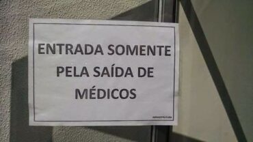 Gosto desta foto e me lembro da ocasião em que foi feita. Estava indo buscar a Marcela no trabalho e estacionei defronte e fiquei olhando aquela arrumação até entender. Legenda original: “Em breve, neste local, uma porta!” (Arquivo)