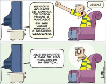Durante o café, a Mar voltou ao assunto da desobediência institucional, praticada pelo presidente do Congresso Nacional:– Isso é uma palhaçada!– Bagunça total…– E o que vai acontecer com o Sarney?– Como sempre, nada.