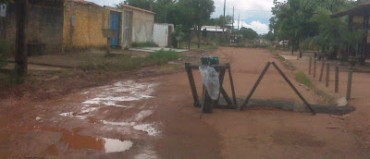 A empresa que está construindo um prédio na Travessa Mamoré esquina com a rua Pio XII, no bairro das Pedrinhas, usa metade da via pública para depositar material de construção. (Fotos JCarlos)