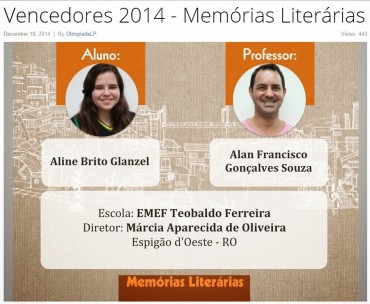 Já estou ultrapassado, pois acho esquisito quando vejo uma matéria em que o repórter é a personagem principal de uma notícia. Como nesse caso, vindo de Espigão do Oeste, terra da deputada Lúcia Teresa: Espigão do Oeste é campeão nacional nas Olimpíadas de língua portuguesa Quinta-Feira, 18 de Dezembro de 2014 O periodista da RSE […]