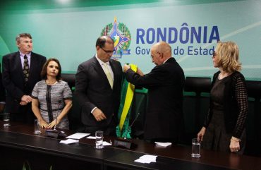 Desembargado presidente do Tribunal de Justiça ocupa interinamento o cargo de governador de Rondônia. Há seis meses Waltemberg fez votos que o próximo governador de Rondônia saísse da mesa de uma solenidade na ALE. Estavam presentes Daniel Pereira, Maurão de Carvalho e ele próprio (Foto TJRO/Divulgação)