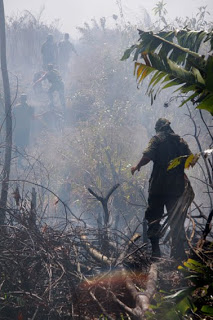 A sufocante fumaça e as chamas devoradoras assustaram e mataram bichinhos no incêndio de hoje. O registro feito pelo Roni Carvalho é o retrato (desculpa o trocadilho) da imagem que ao mesmo tempo que entristece emociona pela beleza. A cor dessa pequenina ave em meio ao cinza sombrio da tragédia é um exemplo.